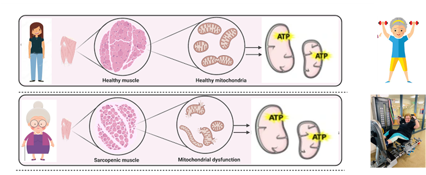 Las mitocondrias son las responsables de la producción de energía por las células. A medida que envejecemos se producen una serie de cambios físicos que acaban afectando a las actividades de la vida diaria. Una persona mayor se fatiga con más facilidad que una persona joven, entre otras cosas, porque sus mitocondrias dejan de ser funcionales, pierden la capacidad de producir energía. La sensación de fatiga es común en la fragilidad y los investigadores de este estudio consideran que esta condición es atribuible a alteraciones a nivel mitocondrial. A través del entrenamiento de fuerza pretenden mejorar la fuerza de las pacientes, así como la función mitocondrial.