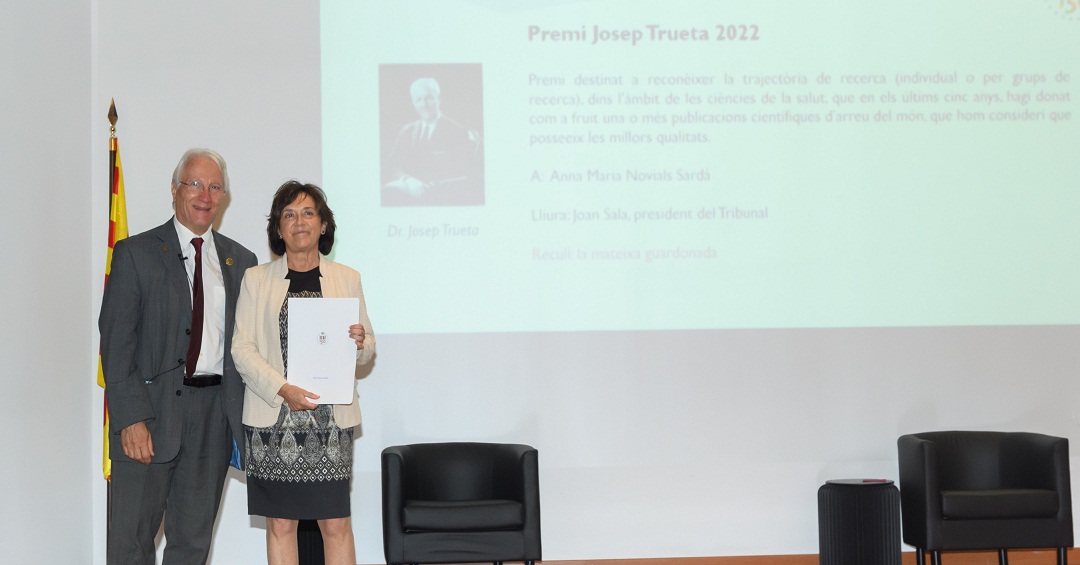 El pasado martes 24 de mayo de 2022, tuvo lugar el acto de Clausura del curso 2021-2022 y la entrega de Premios y Becas conmemorativo del 150 aniversario de la Academia de Ciencias Médicas y de la Salud de Cataluña y Baleares. Durante la sesión, Anna Novials, jefa de grupo Patogenia y prevención de la diabetes del CIBERDEM y el IDIBAPS, recibió el Premio Josep Trueta 2022, que reconoce la trayectoria de investigación, individual o por grupos de investigación, dentro del ámbito de las ciencias de la salud que, en los últimos cinco años, haya dado como fruto una o más publicaciones científicas de todo el mundo, que se considere que posee las mejores cualidades.