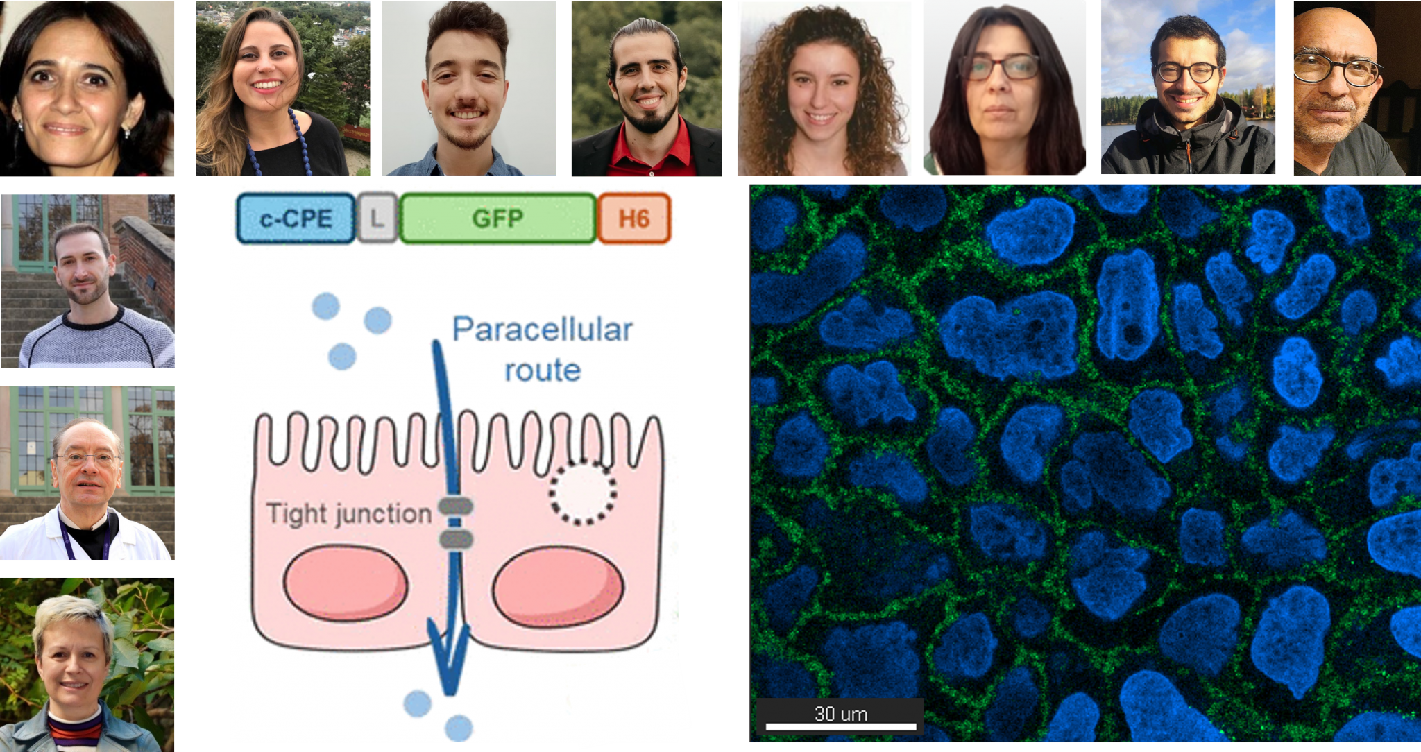 Eric Volta-Durán, investigador del mismo equipo, destaca cómo en el estudio se ha evaluado el uso de una región funcional de la enterotoxina de Clostridium perfringens, conocida por su capacidad de unirse a las uniones estrechas entre células epiteliales. “Gracias a nuestra experiencia en el diseño, obtención y caracterización de proteínas recombinantes con múltiples dominios, hemos conseguido generar proteínas con elevada pureza y estabilidad capaces de unirse eficazmente a estas estructuras celulares” subraya. Los autores comprobaron, mediante microscopía confocal y fluorimetría, que la fuerte unión a las zonas de contacto entre células permite el paso en trans de otras proteínas a través de una monocapa celular, sin inducir toxicidad. “Curiosamente, aunque estas proteínas con el dominio c-CPE no sean capaces de atravesar las barreras celulares en las condiciones estudiadas, probablemente debido a su fuerte unión a uniones estrechas, sí actúan como agentes de permeabilización en trans para otras proteínas que no contienen dicho dominio” explican.