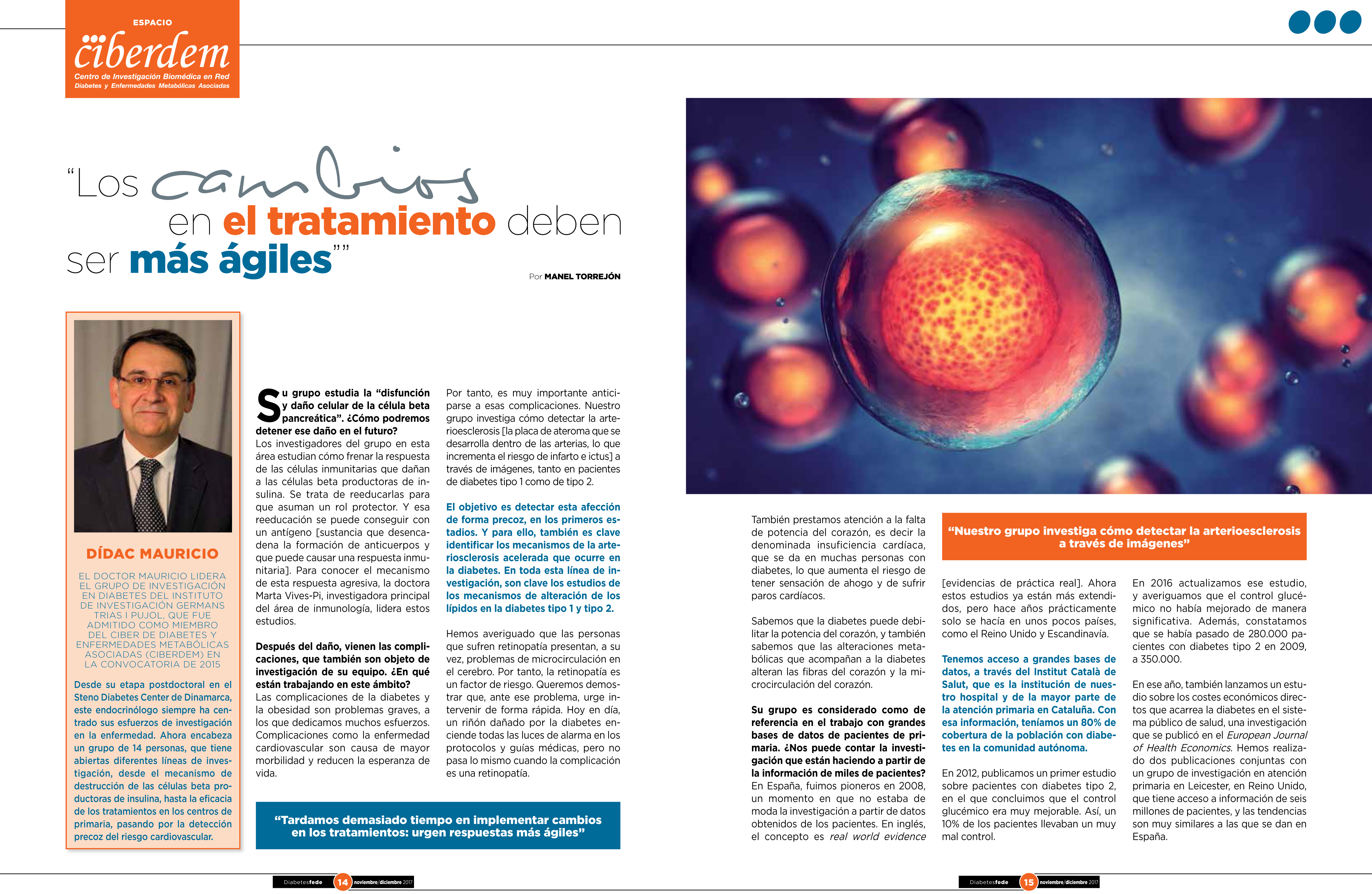 La revista DiabetesFEDE, dentro del espacio que dedica al CIBERDEM, ha entrevistado en su último número a Dídac Mauricio, jefe de grupo del CIBERDEM en el Hospital Universitario Germans Trias i Pujol.