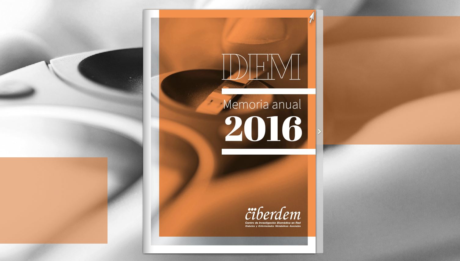 Ya se puede consultar on line y descargar la Memoria Anual CIBERDEM 2016 desde la web, disponible en formato Flipbook y pdf. En esta memoria se recoge toda la información sobre la actividad del CIBERDEM, el trabajo de los grupos de investigación que formaban el centro en ese periodo, los Programas de Investigación, Programas Transversales y Plataformas. En los proximos meses la memoria estará disponible también en inglés.