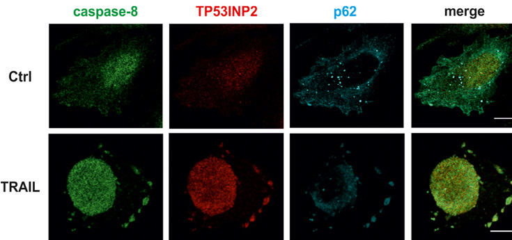 TRAIL es una terapia con un gran potencial como posible tratamiento contra el cáncer ya que esta proteína es capaz de inducir selectivamente la muerte de células cancerosas. Desde su descubrimiento en 1995, muchos ensayos clínicos se han centrado en este fármaco; sin embargo, no todos los pacientes con cáncer responden a este tratamiento. Investigadores del IRB Barcelona han confirmado la relación entre altos niveles de TP53INP2 y una mejor respuesta al tratamiento con TRAIL en células cancerosas de hígado y de mama.