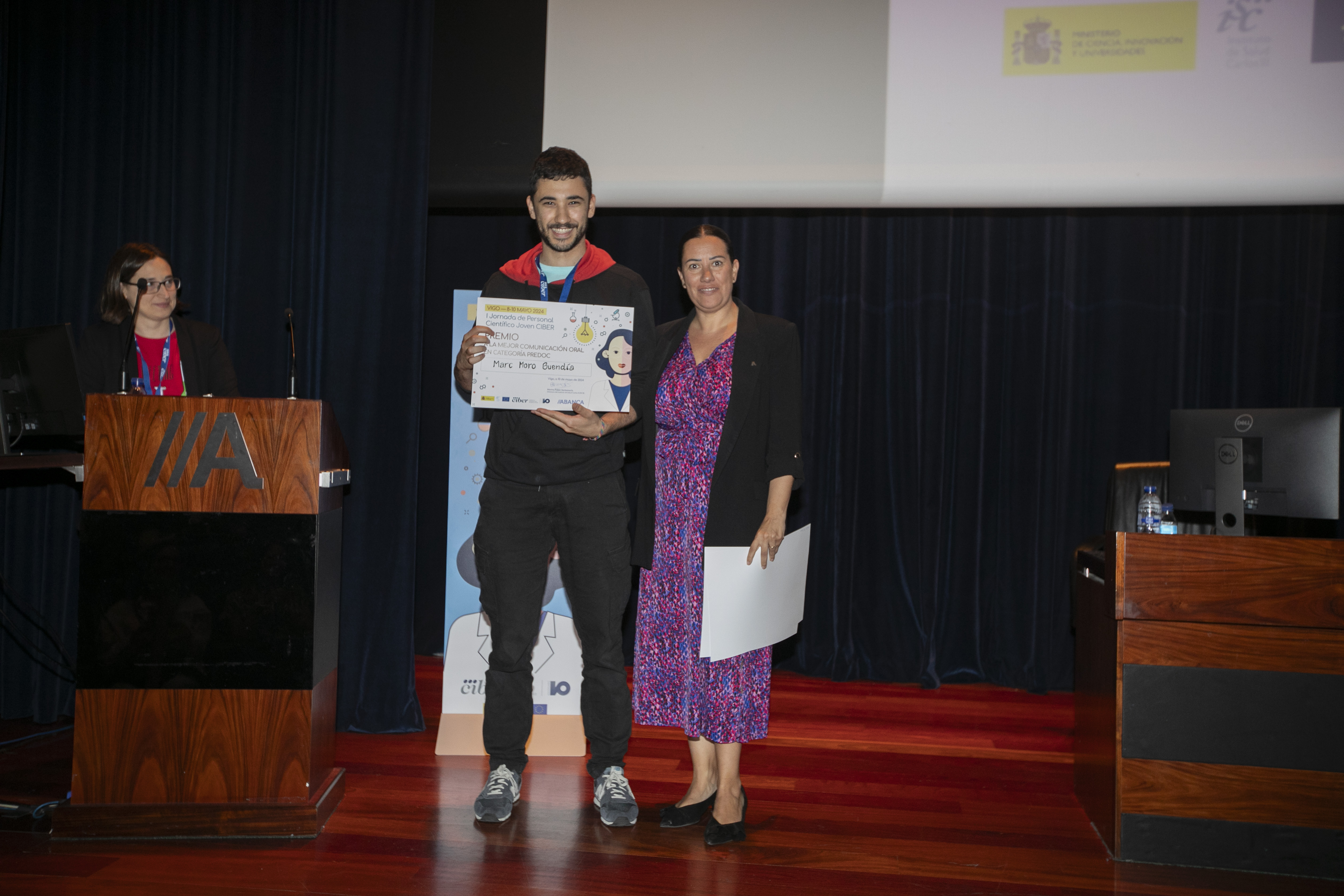 El premio a la mejor comunicación oral en formato PÓSTER fue para Nadia Di Franco, colaboradora del grupo de Jordi Alberch del CIBERNED. Su investigación titulada "Alteration of Hippocampal CB1R can Drive Neuronal-Astrocyte Dysfunction Leading to Cognitive Decline in Huntington’s Disease" estudió la alteración del sistema cannabinoide en la enfermedad de Huntington. Su trabajo reveló que la disminución del receptor cannabinoide tipo 1 (CB1) en las neuronas del hipocampo podría causar disfunción cognitiva. Incrementando viralmente el CB1, se mejoraron los déficits de memoria y se restauraron proteínas sinápticas y espinas dendríticas, sugiriendo el potencial terapéutico de los cannabinoides.