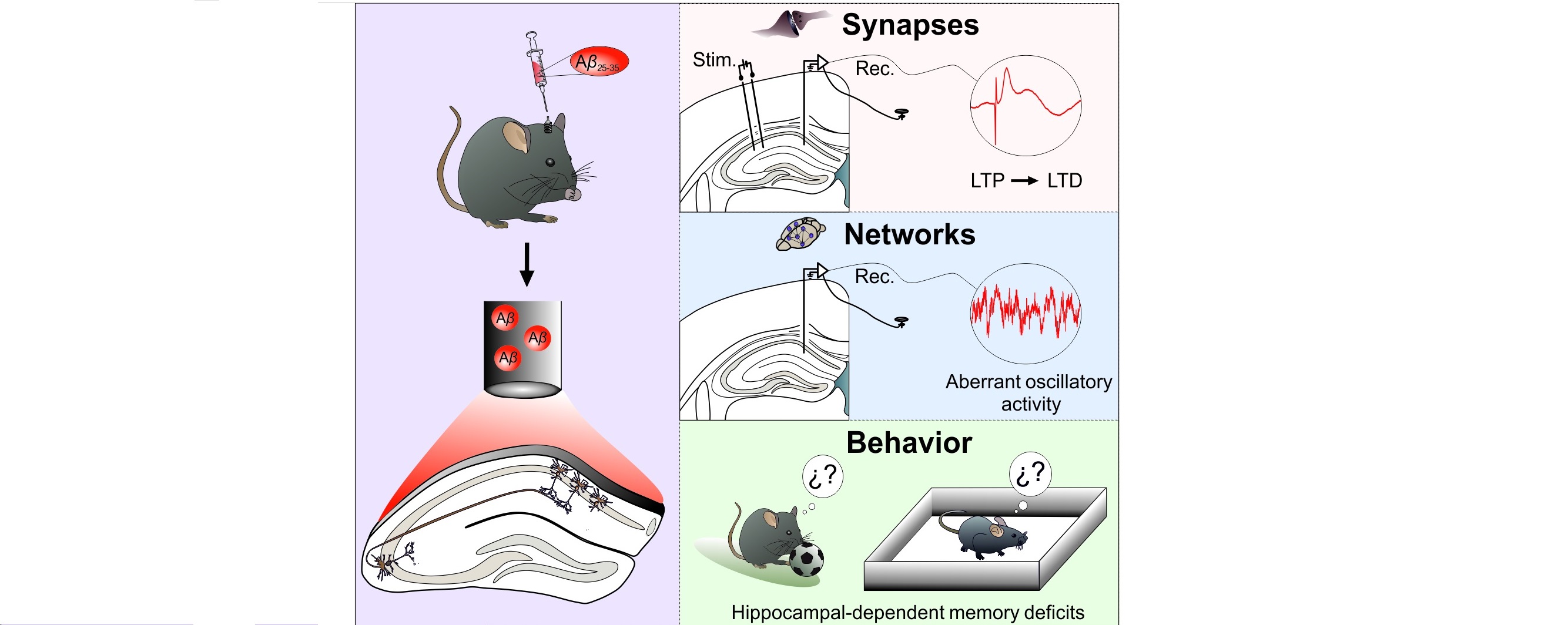 Un nuevo trabajo liderado por la investigadora del CIBERFES Jennifer Mayordomo, en colaboración con investigadores de la Universidad de Castilla la Mancha y el Instituto Investigación Sanitaria Gregorio Marañón y la Universidad Pablo de Olavide de Sevilla, ha descrito por primera vez en ratones cómo el péptido Aβ25-35 altera el funcionamiento del hipocampo impidiendo el aprendizaje y memoria en ratones. Esta pequeña fracción del péptido amiloide actúa de forma similar a los fragmentos mayores y considerados clínicamente más relevantes en la Enfermedad de Alzheimer.